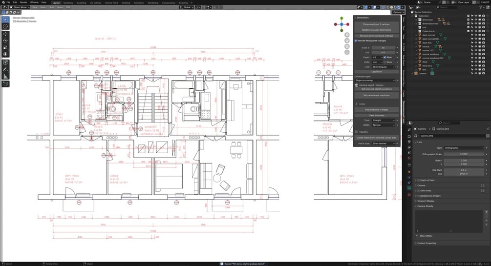Dimensions and Lines is a Blender addon that enables the creation of dimensions, technical drawings, and blueprint-style layouts directly inside Blender.
